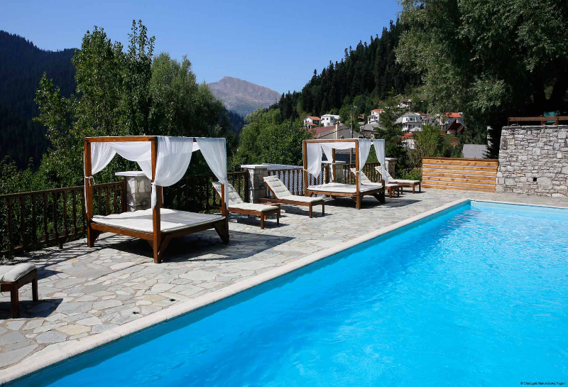 Κρυμμένο στις καταπράσινες πλαγιές της οροσειράς της Πίνδου, σε υψόμετρο 1.200 μέτρων, με εκπληκτική θέα προς το δάσος, το χωριό και τα περτουλιώτικα λιβάδια, το ξενοδοχείο είναι ένας μοναδικός προορισμός για ξεκούραση ή για απόδραση στη φύση.