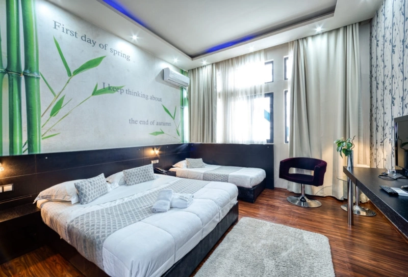 Απολαύστε τη διαμονή σας στα πολυτελή και άνετα δωμάτιά μας, που χαρακτηρίζονται από εξαιρετική αισθητική και πολλές παροχές.