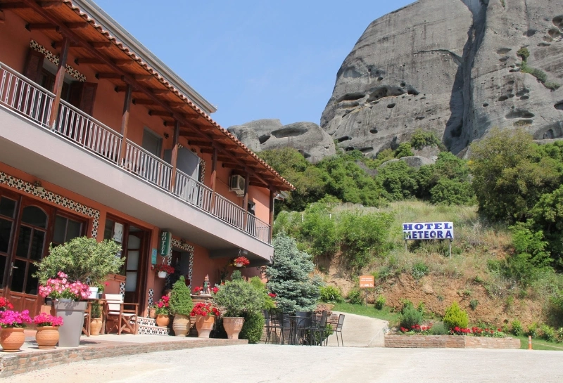 Το Hotel Meteora βρίσκεται σε ένα από τα ωραιότερα σημεία της περιοχής στην Καλαμπάκα, ακριβώς κάτω από τους γιγάντιους βράχους των Μετεώρων.