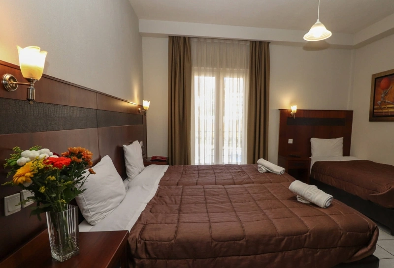 Αφεθείτε στα περιποιημένα δωμάτιά μας, σχεδιασμένα για να παρέχουν έναν ήρεμο χώρο ανάπαυσης μετά από μια μέρα εξερεύνησης. Ξυπνήστε με ένα πρωινό που ικανοποιεί ποικίλες γεύσεις, δημιουργώντας το κατάλληλο κλίμα για μια ημέρα γεμάτη περιπέτειες.