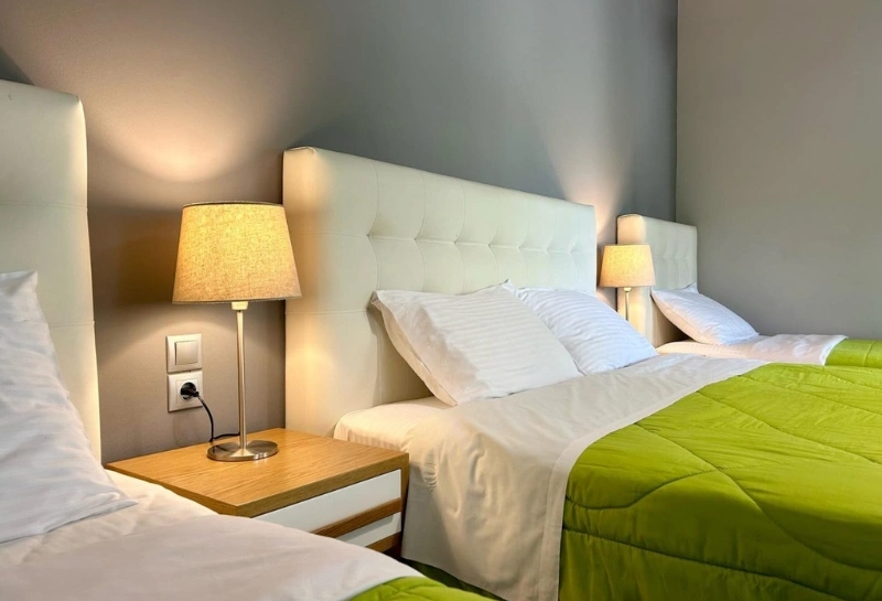 Όλα τα κλιματιζόμενα δωμάτια διαθέτουν ψυγείο, τηλεόραση επίπεδης οθόνης 32 ιντσών και βεράντα με θέα στον κήπο.
