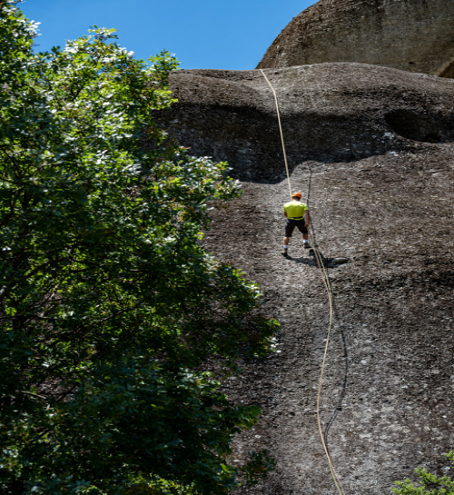 Το πρόγραμμα μας Rappel στα Μετέωρα περιλαμβάνει καταρρίχηση πεδίου με χρήση αναρριχητικού εξοπλισμού. Πρόκειται για μια εύκολη δραστηριότητα που δεν απαιτεί προηγούμενη εμπειρία. Πεδίο δράσης μας ο βράχος της Ντούπιανης. Το συγκεκριμένο πεδίο είναι ιδανικό για μια πρώτη εμπειρία στο Rappel. Αφετηρία μας η περιοχή Καστράκι. Μετά την απαραίτητη εκπαίδευση και αναφορά σε σημαντικά θέματα ασφαλείας ξεκινάμε την μικρή μας περιπέτεια! Με τη βοήθεια του έμπειρου συνοδού της Trekking Hellas καταρριχώμαστε από ένα rappel 20 μέτρων! Μια μοναδική εμπειρία σε ένα περιβάλλον απαράμιλλου φυσικού κάλλους!