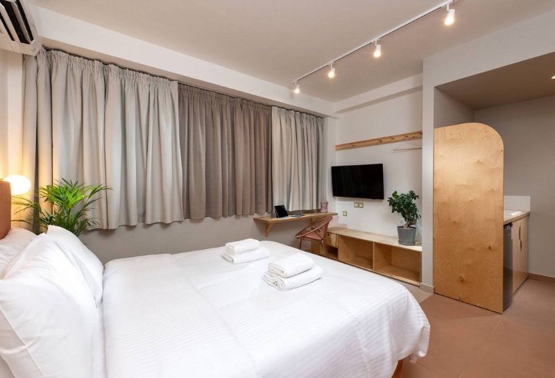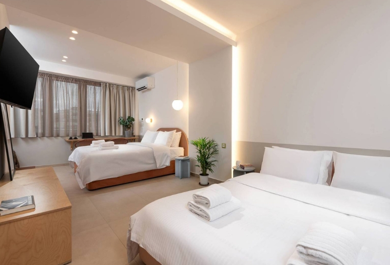 Το Superior Δίκλινο Δωμάτιο είναι η τέλεια επιλογή για δύο άτομα που ταξιδεύουν μαζί, συνδυάζοντας τη σύγχρονη κομψότητα με μια φιλόξενη ατμόσφαιρα. Με ένα άνετο διπλό κρεβάτι με στρώμα Coco-Mat και ένα κομψό, μοντέρνο μπάνιο με ντους, αυτός ο χώρος είναι σχεδιασμένος για χαλάρωση. Απολαύστε δωρεάν Wi-Fi, κλιματισμό για άνεση όλο το χρόνο και τηλεόραση επίπεδης οθόνης για τη διασκέδασή σας.